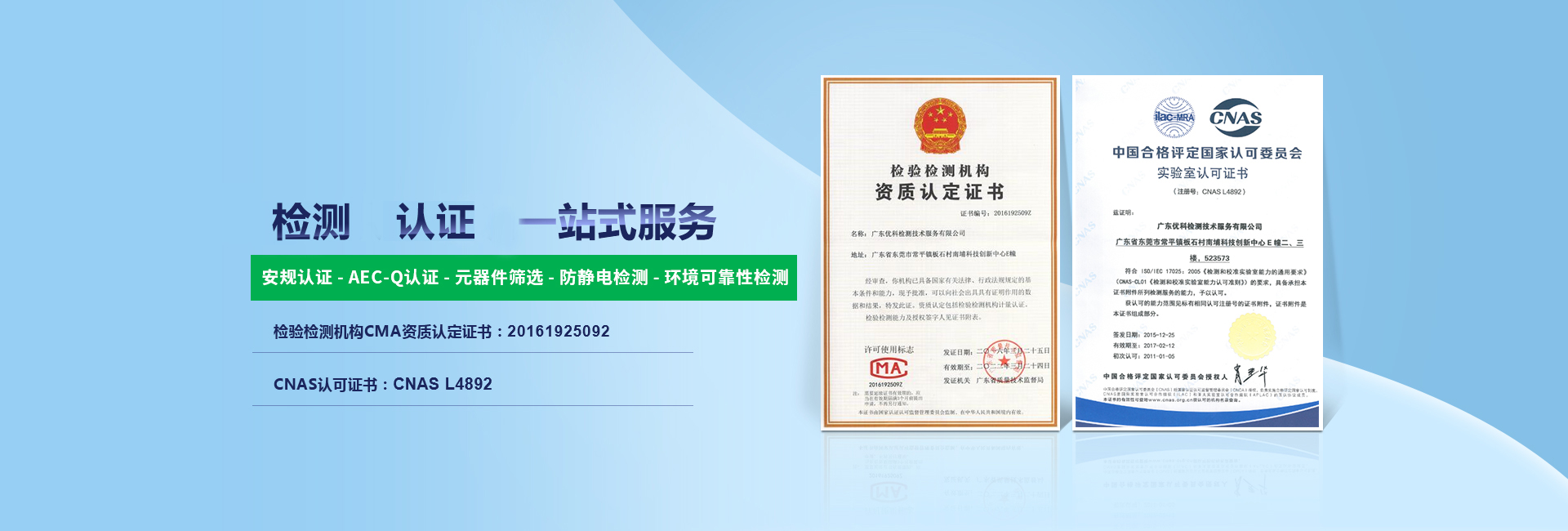 廣東優科檢測認證有限公司(簡稱:UKK)成?于2007年,是國內專業的汽車整車及零部件、電子元器件第三方檢測實驗室,國家級中小企業公共(技術)服務示范平臺,獲得了國家?新技術企業、廣東省專精特新中小企業、市級工程技術研發中心等榮譽稱號。 More